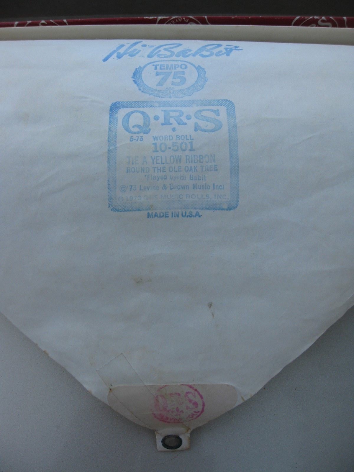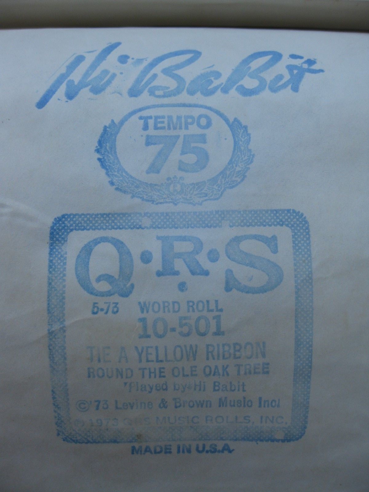 "TIE A YELLOW RIBBON" PIANO ROLL Vintage QRS 10-501 / Hi BaBit 1973 - USA - $18 - (Heber, AZ)
