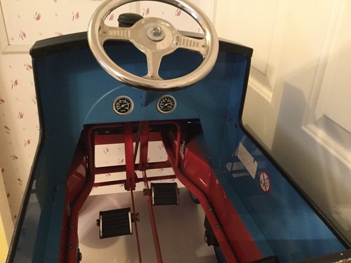 Here is a very rare hard to find Thomas the train engine metal pedal car made by airflow collectibles Inc. in USA. This is a special limited edition that has been out of production for quite awhile. This item was purchased at and estate sell and was stored in a dry basement. Condition overall would be considered very good with minimal wear. Be sure to look at all pictures there are things like the eyes,paint fade that can be cleaned so like I said look it over good in the pictures. Meas. Length 34" width 18" height 20" three position adjustable pedal assembly, sealed ball bearing drive, high tracking tire, toy safety tested and approved for the USA, has non slip pedals, and has a automotive powder coat lead free paint job.