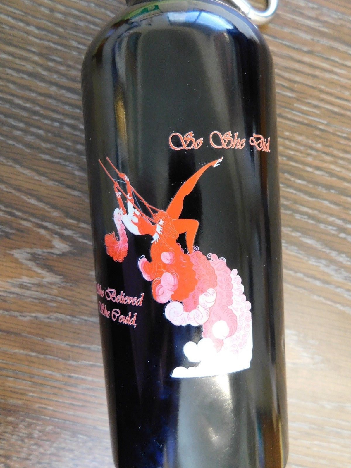 Leftover 20 oz metal water bottles from a trapeze party.They read "She Believed She Could, So She Did" with a woman on a trapeze.We have 5 available bottles, they are black with red lettering.Lightweight, some have small light dings from transport, see pictures.These were purchased in 2017 and have been stored in a smoke - free environment in the original box.