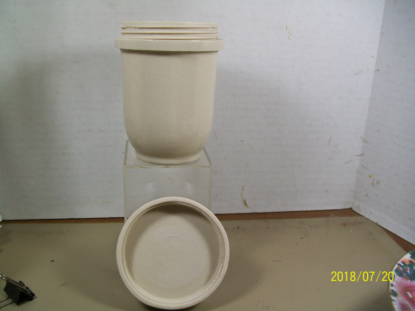 Here is a very nice "Egg Cup" made in England by "The Original Kitchener". Made of Ceramic with the eye to dip it in the hot water and retrieve it with your egg inside being cooked. The lid is also ceramic and has thread for a screw on lid. Only one small chip on the bottom and could be a factory chip. Doesn't show unless you pick it up and turn it over. It stands 4 1/4" tall and is 2 3/4" across the lid. NO cracks, and NO missing parts....except the egg!... Very heavy. Winner to pay $12.90 for U.S. Priority Mail with insurance and tracking. We try our best to ship the same day or the next day at the latest.