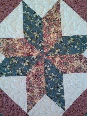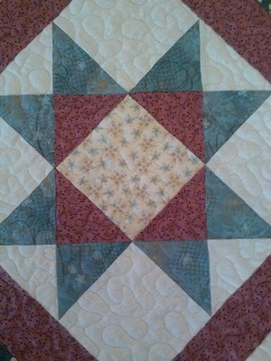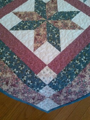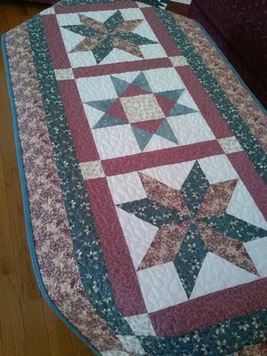"Stunning Stars" Handmade Table Topper, Teal/Mauve,100% Cotton Machine Quilted - $100 - (Scarborough, ME)