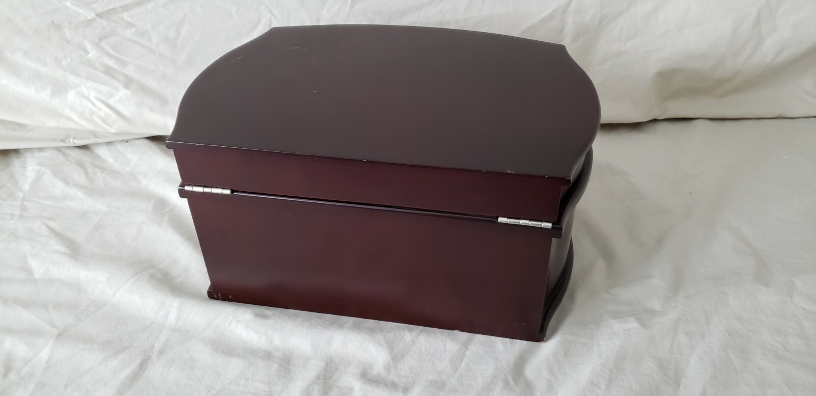 Really nice box,picture frame lifts to install, 6 pounds ,11×8×5.5,solid,heavier jewerly box but nice,great condition