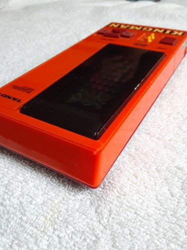 extremely rare Vintage 1984 Tandy KingMan VFD Tabletop electronic game licensed from Tomy and is based on a Donkey Kong Clone in good collectible condition. I doubt you will often find this game any time soon for sale on E-Bay nationally or internationally as the game itself is extremely rare. The game has been tested working on batteries. Aesthetically the condition of the game is generally good to very good overall with exception to the extensive cosmetic damage please study these images carefully. There will always be obvious marks/scratches/blemishes/discoloration across the screen & unit from it's age and prior usage but this is to be expected on most used vintage games of this age. Please study the pictures carefully and zoom in to see the exact item you shall receive. Item requires 4 x (AA/MN1500) Batteries No box or instructions are included within this sale. Ships as soon as payment has been confirmed. Shipping only available within the U.S. Shipped with USPS mailing services. Thank you very much for your business. We look forward to serving you again