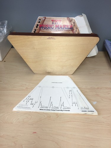 PREOWNED The Music Maker Worlds Most Charming Musical Instrument Vintage Lap Harp. Comes with music sheets only nothing else included. Box & sheets have some water stains on them as shown. Harp is in excellent condition has tape with cords marked but can be removed. Very easy way for anyone to learn to play. Shipped with USPS Priority Mail.