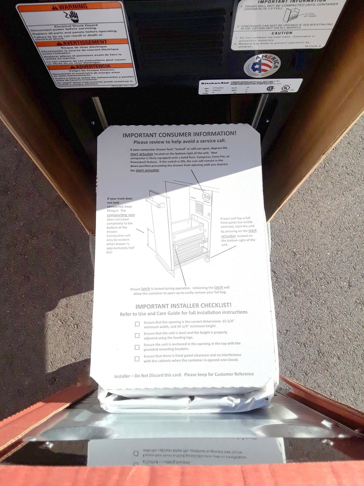 "New Open Box" KitchenAid 15" Black Built-In Trash Compactor - KTTS505BL - $875 - (Denver, CO)