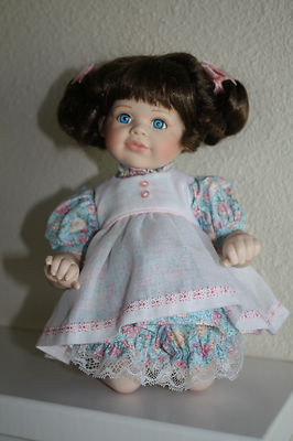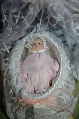 Georgetown Collection Porcelain Doll from the 'Songs of Innocence" Collection by Joyce Reavey. Doll measures 10" head to toe. Comes complete with miniature porcelain christening doll in its own lace-trimmed bassinet. Comes in her original box with a certificate of authenticity. Just precious. Has been in a display cabinet. I am downsizing my doll collection.