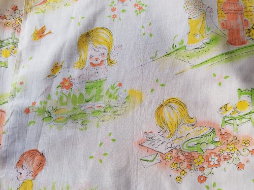 vtg 70's fabric Juvenile cotton Cute large motif 1.75 yd peach - $24 - (Hagerman, ID)