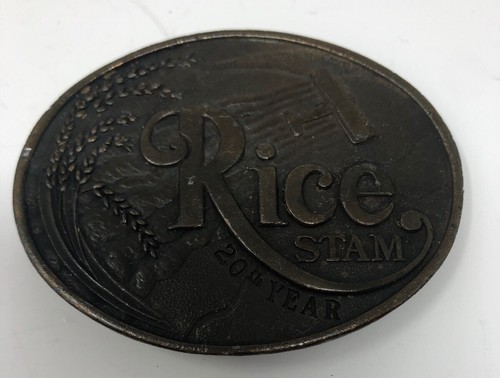 Vintage -Stam Rohm Haas Rice 20th year belt buckle. This would make a nice collectible piece or to actually wear every day. Very nice looking buckle. STAM Helping Grow the World’s Best Rice 1961-1981. Size is roughly 3”x 2 1/4” If you have any questions feel free to ask. Thank you for your business. I really appreciate it. I try to ship same day. Thank you.